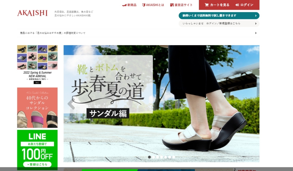株式会社AKAISHIは女性向けの「足の健康に良い」シューズをECサイトで販売している企業になります。