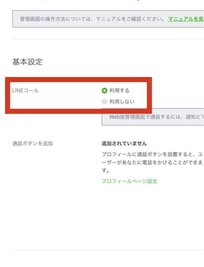 基本設定の「LINEコール」の利用するにチェックを入れればOKです。