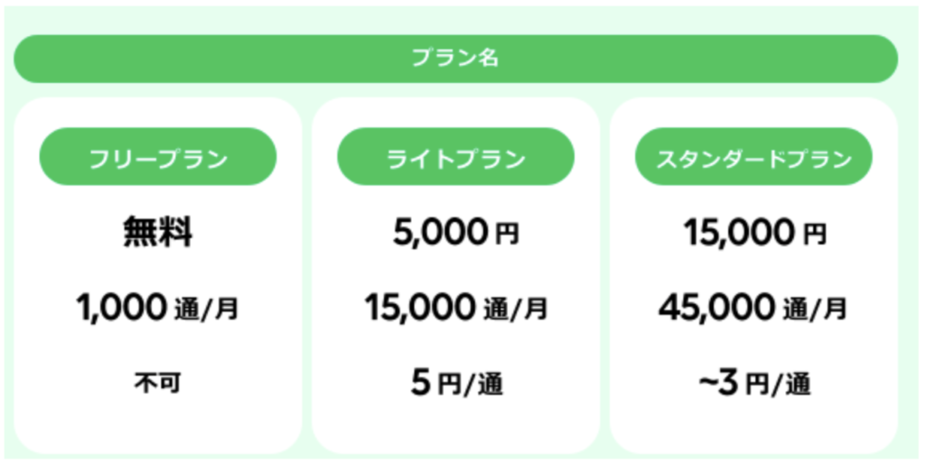 無料プランと有料プランは、送信できるメッセージ数に違いがあります。無料プランは1,000通までは無料でメッセージを送信することが可能です。