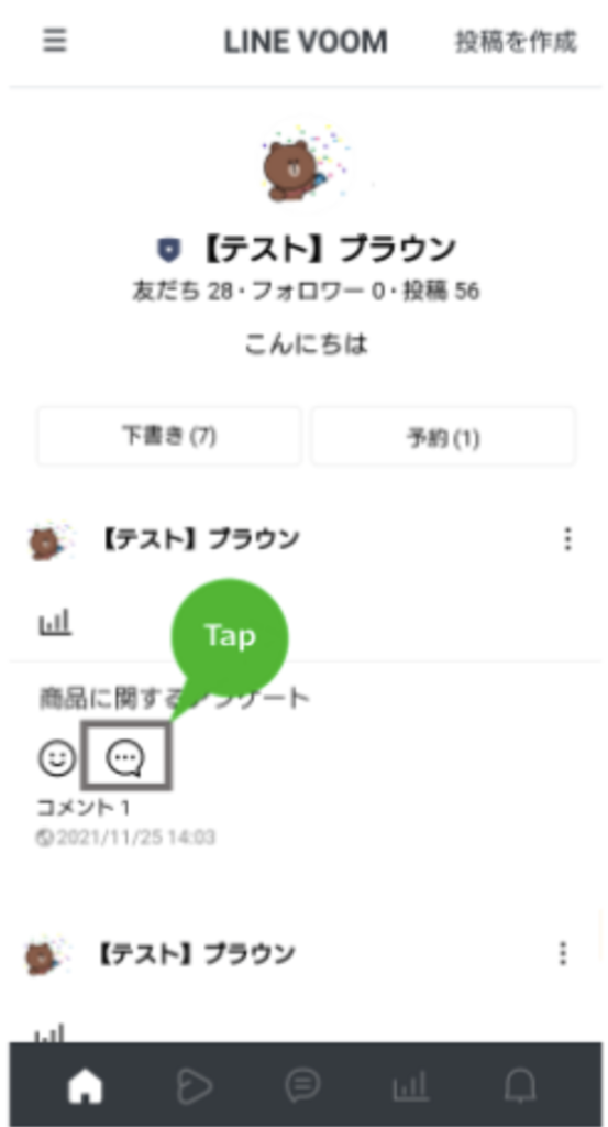 「VOOM」という機能があります。このVOOMで投稿すると、友だちのLINEアプリのVOOMに表示されることになります。
