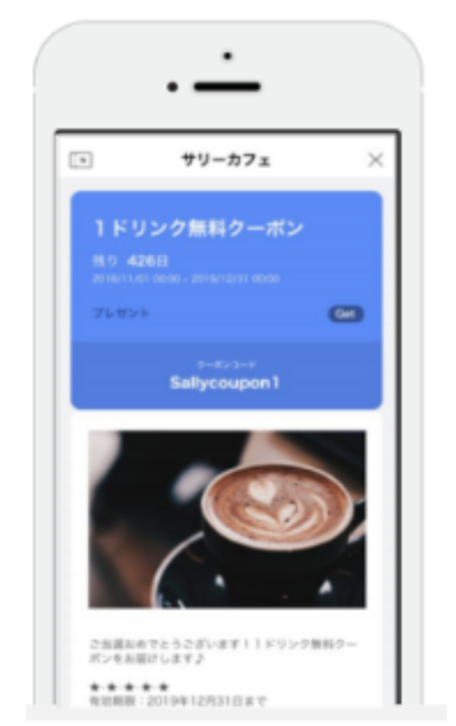 クーポンの内容としては「500円OFF」「ドリンク1杯無料」など、自由に設定できます。