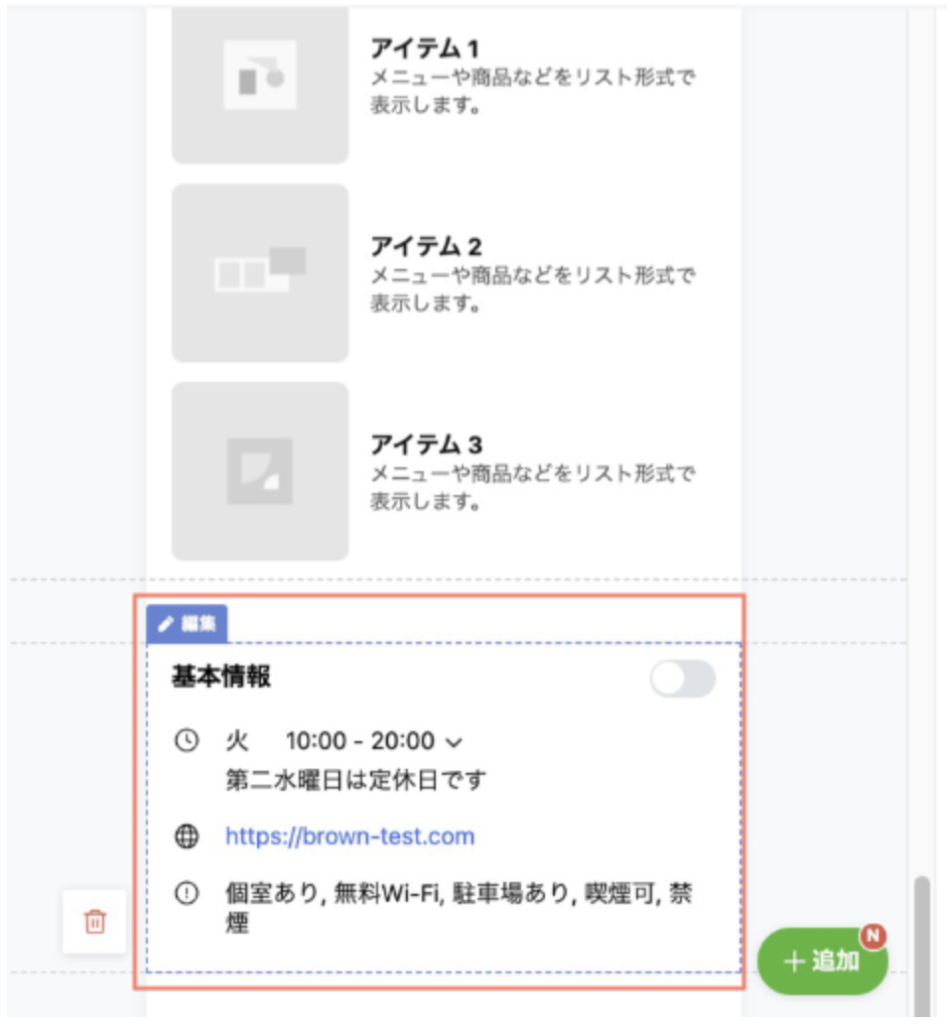 プロフィールで「名前」「プロフィール画像」「住所」などの基本情報が設定できます。また「予約」「クーポン」などのコンテンツも表示することができます。