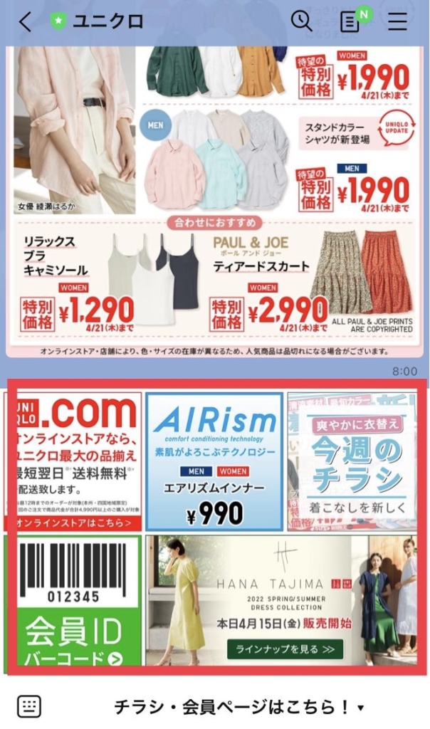 ・ショップカード クリックすると、LINE上のショップカードの確認が可能
