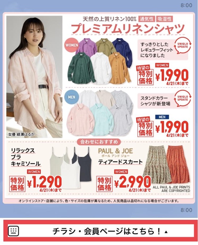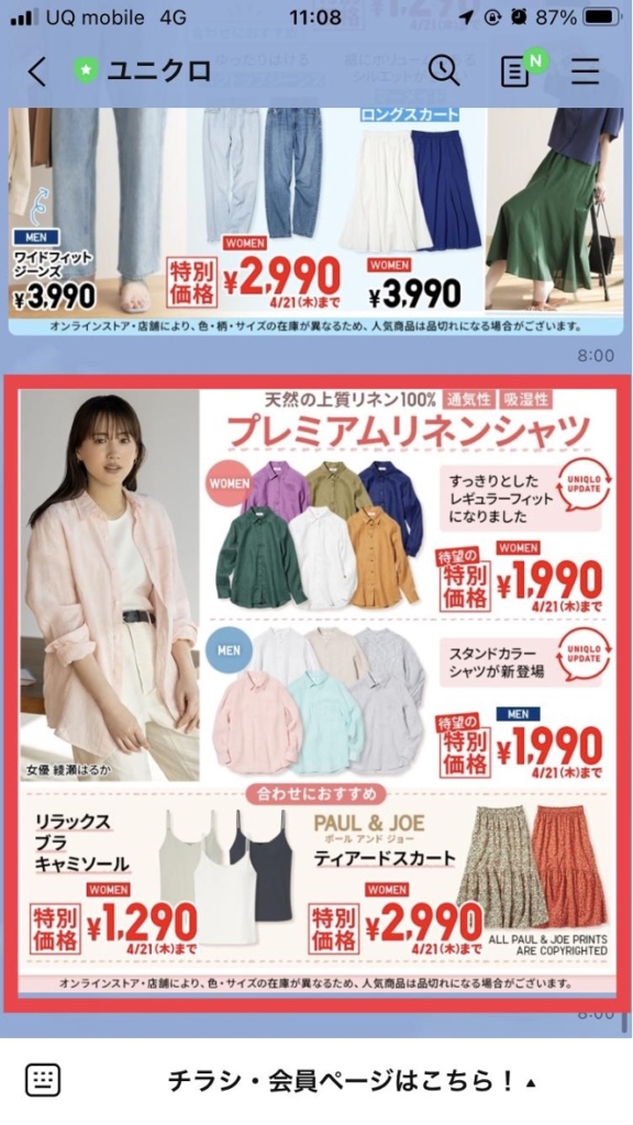 ・クーポン クリックすると、LINEで発行されたクーポンを表示、確認できる