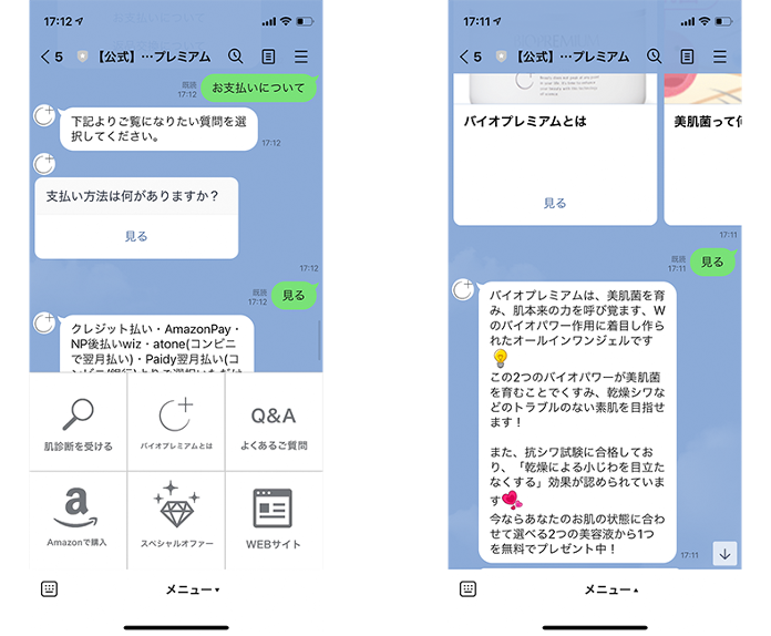 プレミアムコスメさんのリッチメニューは、商品の購入がスムーズに可能かつ、肌診断という「自分のお肌に合った化粧品」をチョイスしてくれる機能も搭載されてます。
