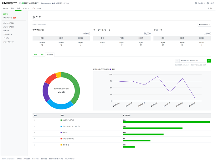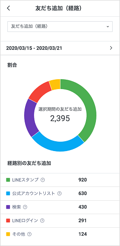 この機能を使用することで、どの方法で友だちが多く追加されているのか、どこに力を入れていくべきかが分かります。