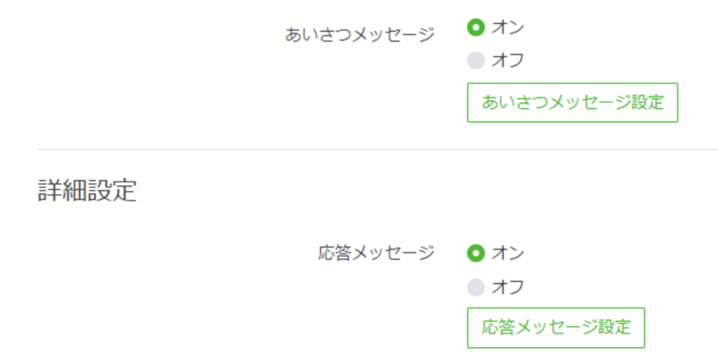 ただ、応答メッセージとAI応答メッセージは同時に使用することができないので、どちらかを選ぶことになります。