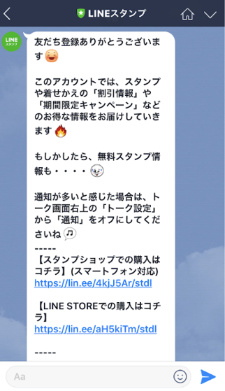 友だちに追加してもらった際に送る「あいさつメッセージ」で配信内容や頻度・通知オフについて案内するようにしましょう。