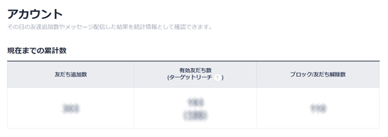 LINE公式アカウントの管理画面では「友だち追加した人数」や「ブロックされた人数」を確認できますが、これらの数値を見て運用内容を改善していく手もあります。