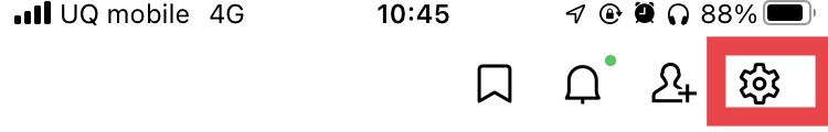 ① トップ画面の右上に表示されている歯車ボタンをクリックする