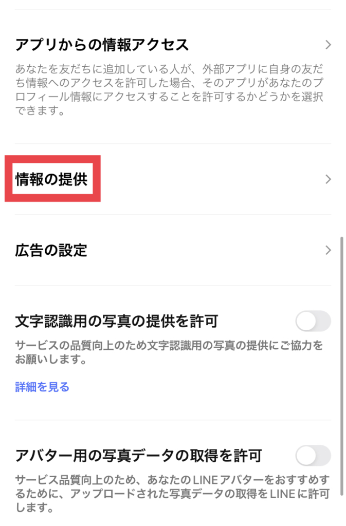 ③「情報の提供」をクリックする