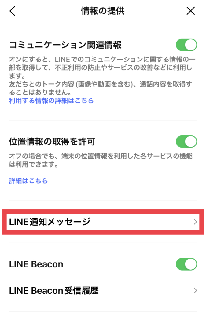 LINE通知メッセージを受け取りたくない場合