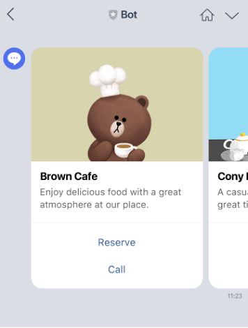 カルーセルテンプレートおよび画像カルーセルテンプレートは、複数のボタンテンプレートや画像を横スクロール形式で閲覧可能なメッセージテンプレートになります。