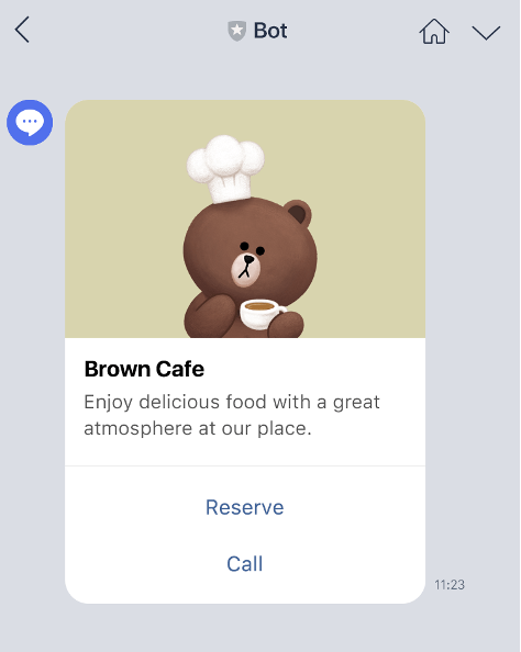 上画像のように、画像、タイトル、テキスト、クリックすると指定されたアクションが発生するボタンのついているメッセージテンプレートになります。