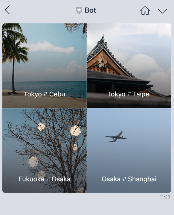 それぞれの画像がクリック可能になっており、クリックすることで別のページに遷移したり、メッセージを送付したり等クリックした画像に応じたアクションが実装できます。