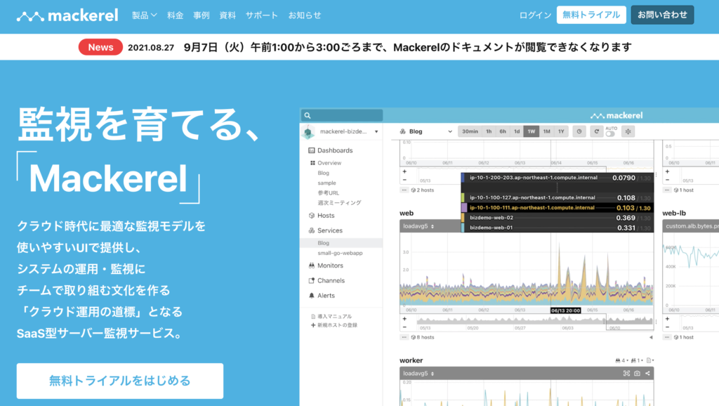 Mackerelとの連携はMackerel側で行わなくてはならないので、まずは管理画面にアクセスしてください。